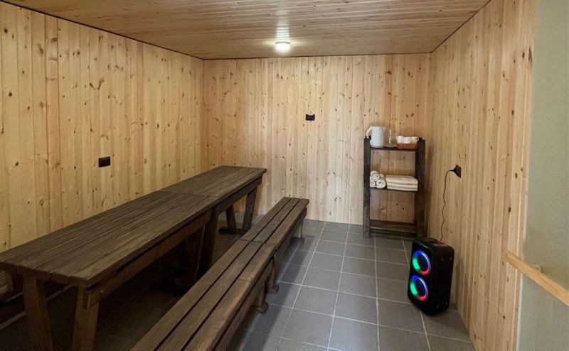 Для любителей гриля и шашлыков на территории обустроена мангальная зона. Расслабиться после активного дня можно в настоящей русской бане на дровах. В теплое время года для юных гостей устанавливается батут, а летом еще и надувной бассейн. Среди прочих удобств – автопарковка и безлимитный интернет.